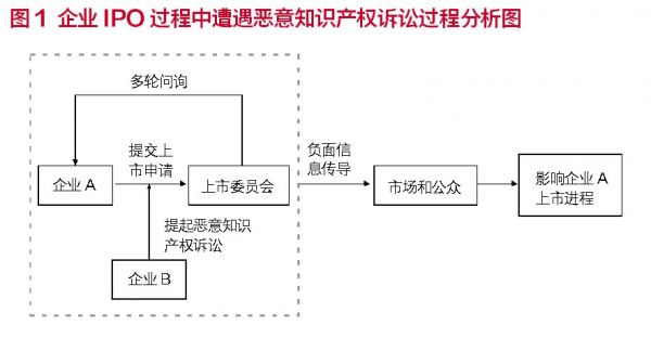 企业A与企业B一般为同行竞争者,若企业A提出IPO申请,企业B希望阻碍企业A的上市进程甚至使其上市计划失败,企业B或许会采取提起恶意知识产权诉讼的方式。